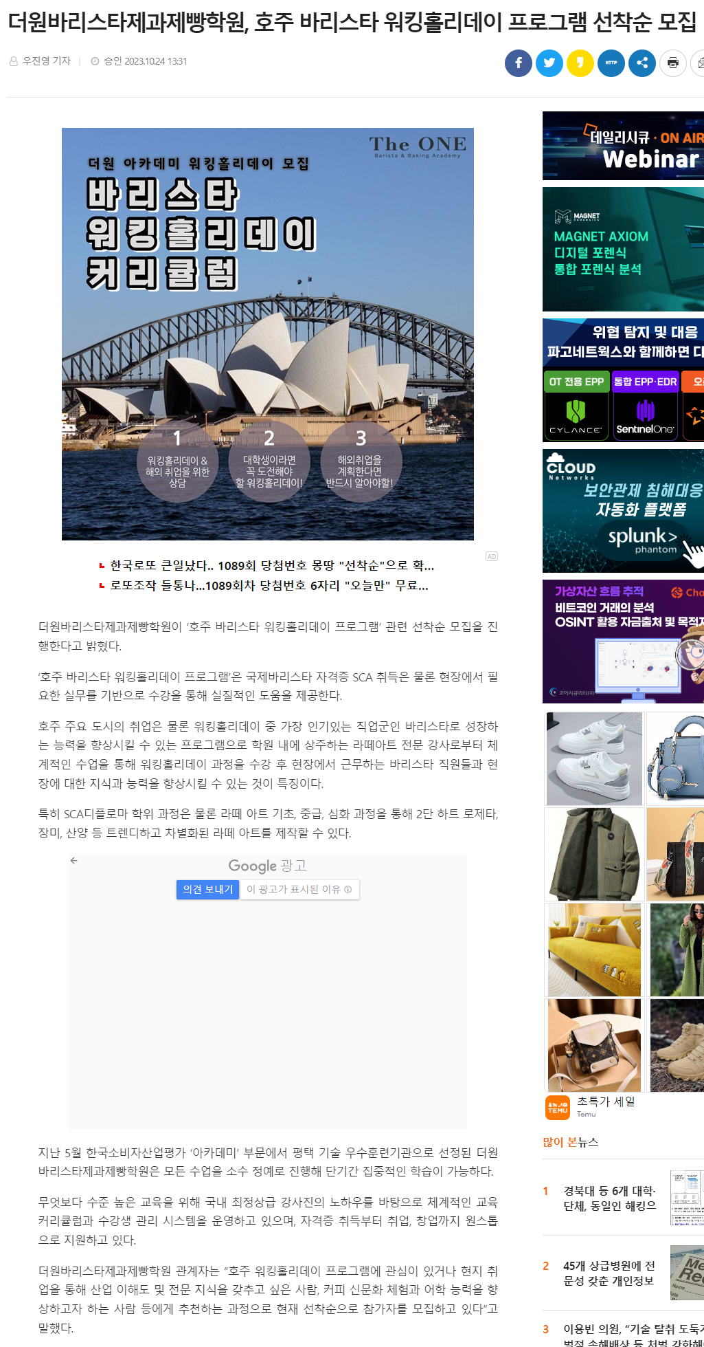 [소식] 호주바리스타 워킹홀리데이 과정 오픈