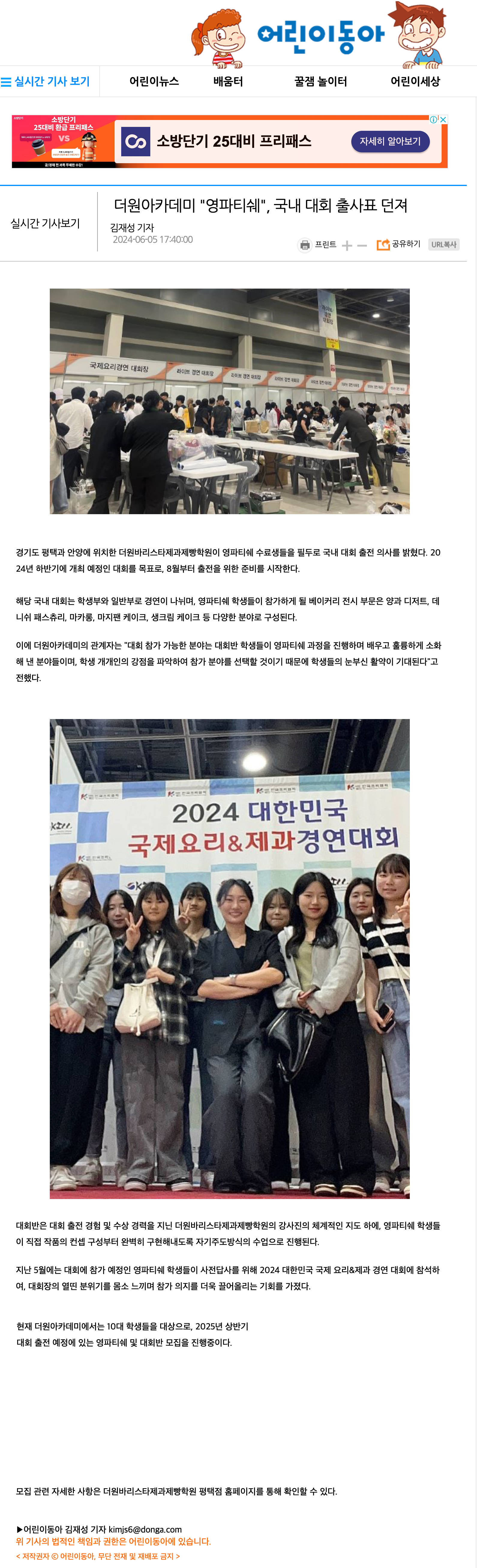 [뉴스] 더원바리스타제과제빵학원 "영파티쉐", 국내 대회 출사표 던져